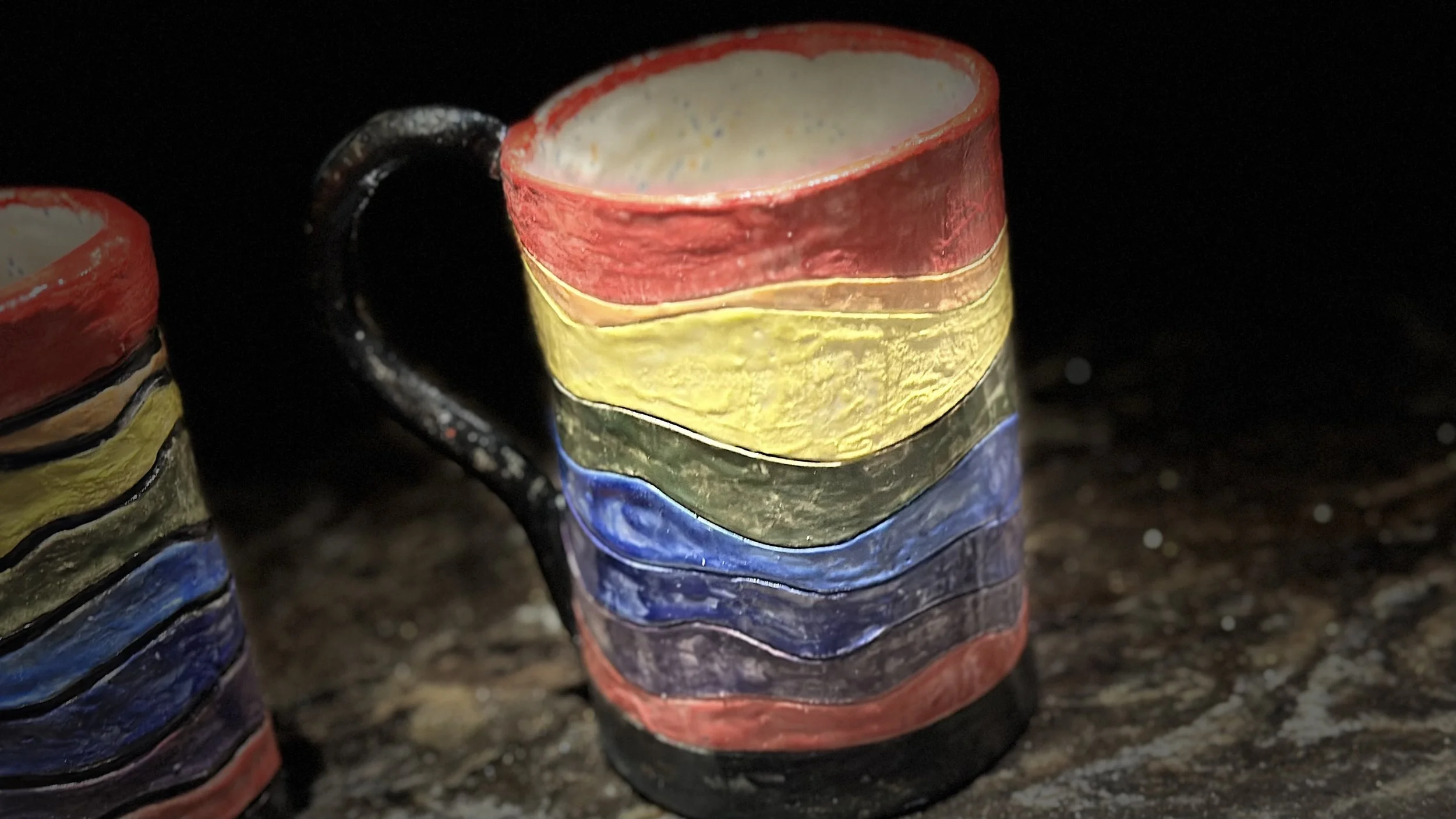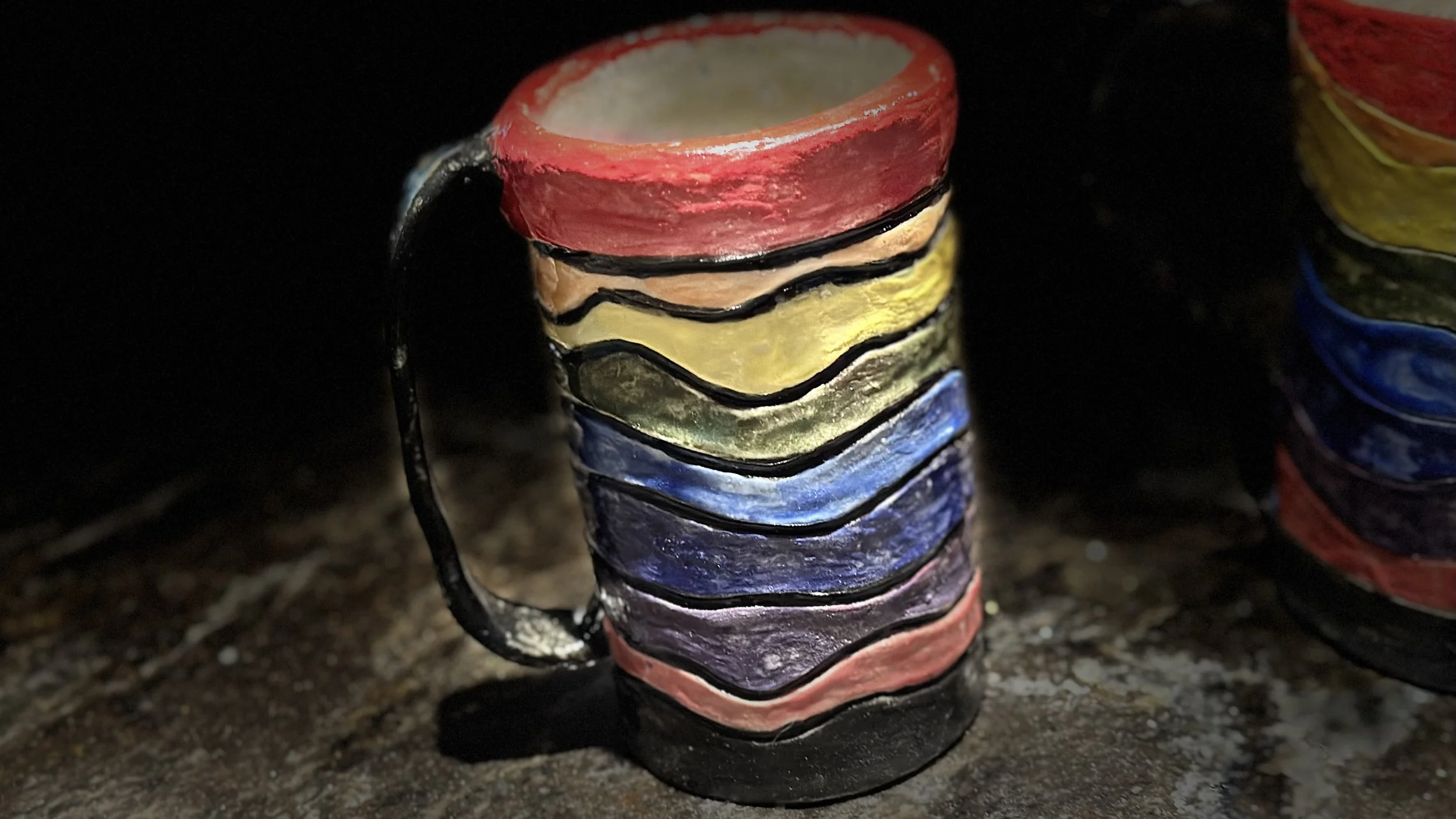 Exploring Form and Design: Two Rainbow Mugs in Progress