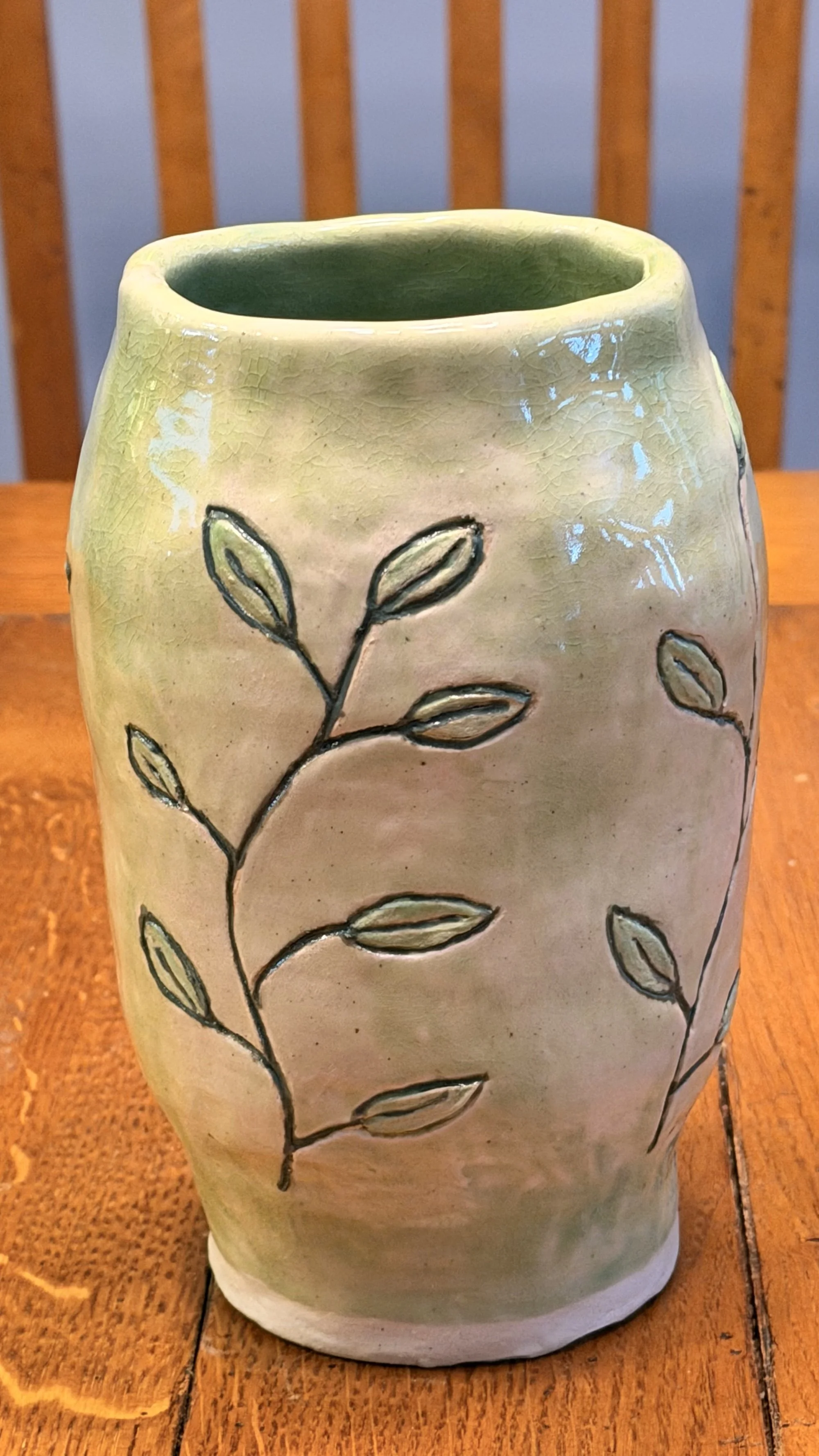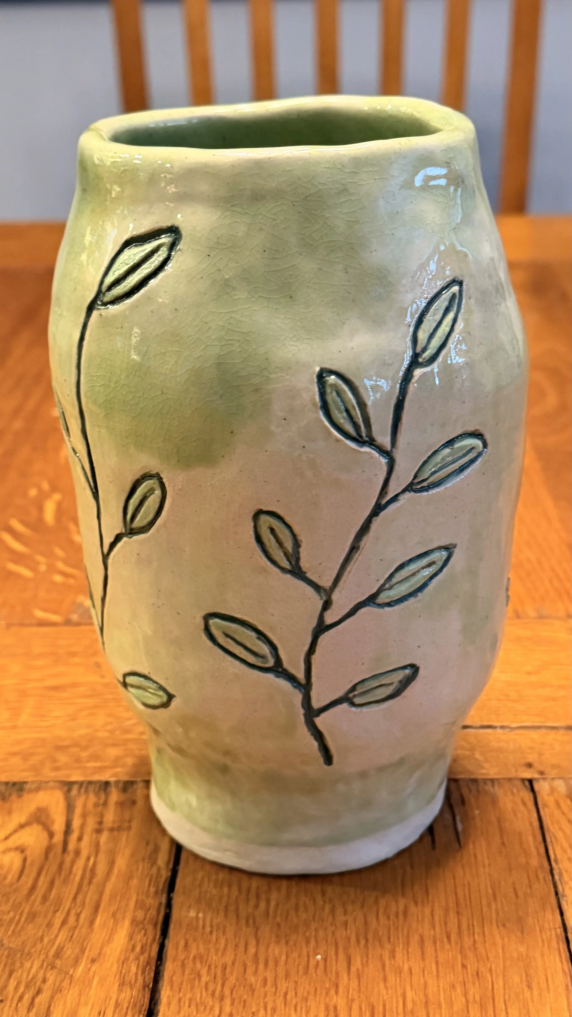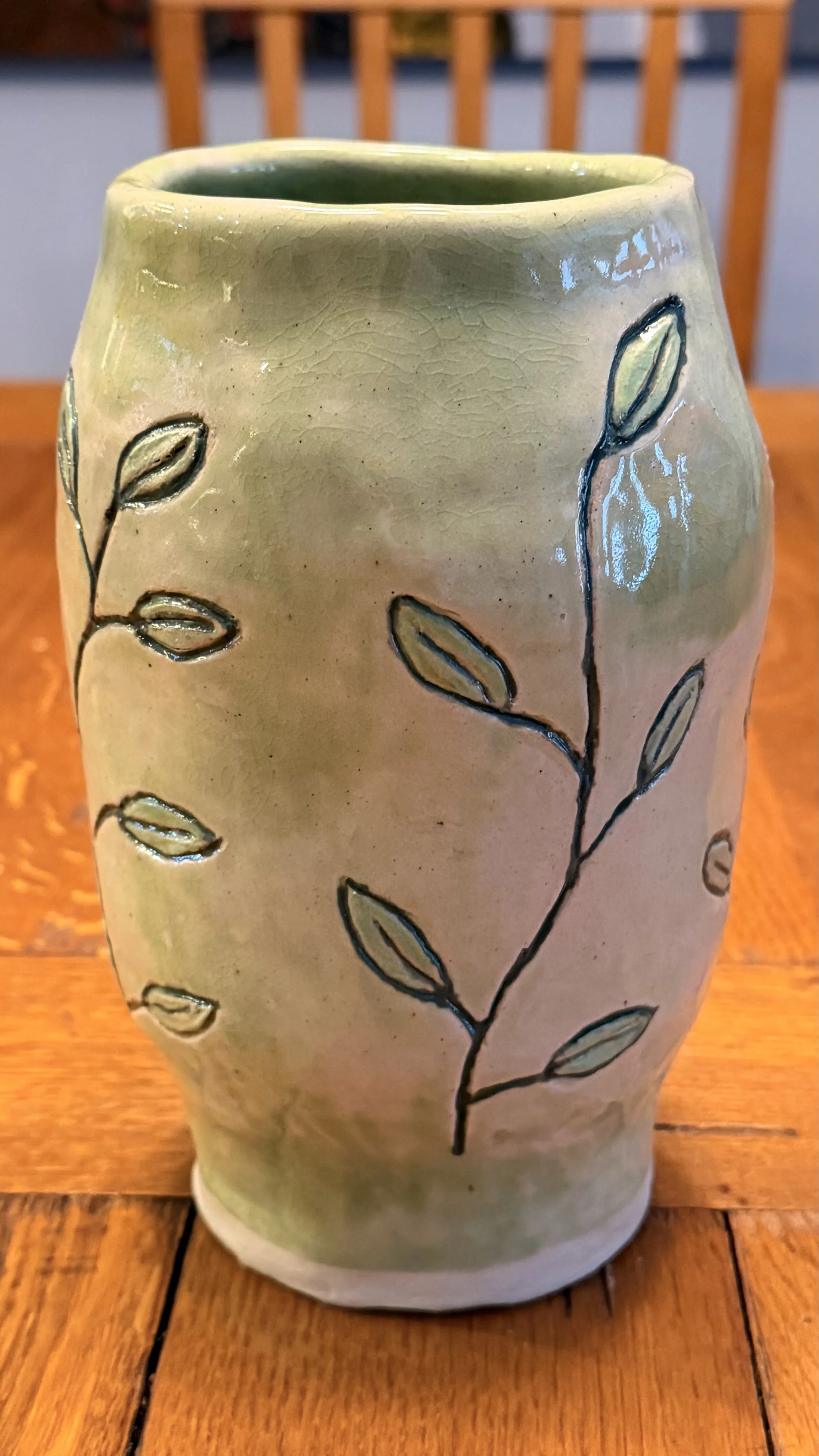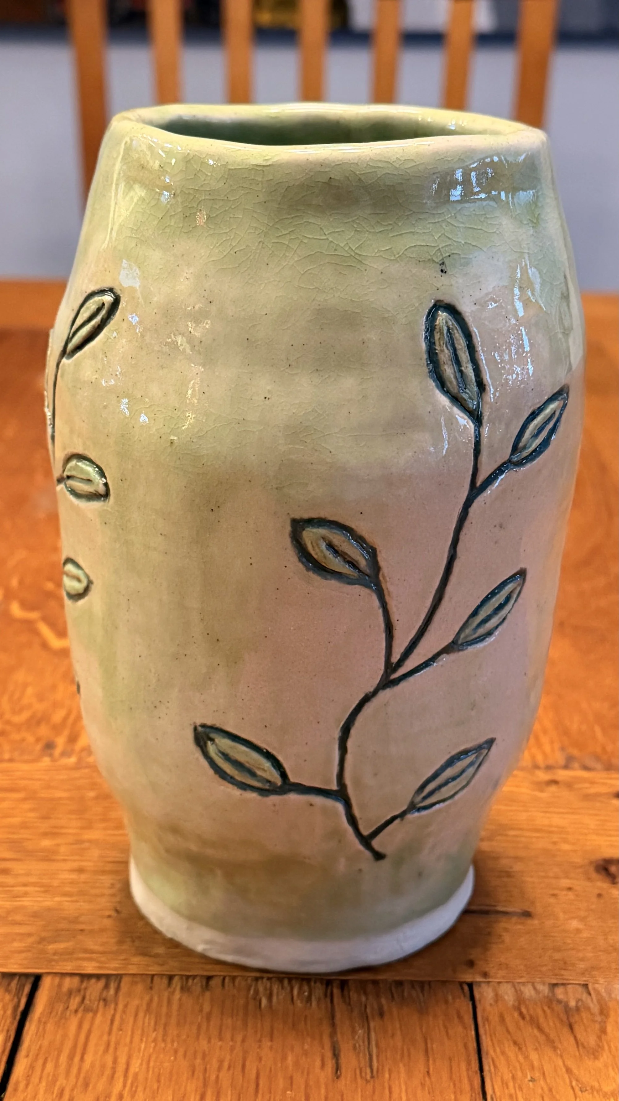 The Eclipse Edge Vase is a modern, hand-built statement piece with an irregular silhouette and bold color-blocked underglaze in layered blues and inky blacks. Finished with a smooth, glossy surface and a clean, blue interior, it’s ready to hold flowers. just a few sculptural stems or stand alone as a focal point on a shelf, mantle, or entry table. It embraces bold blue-black contrasts and asymmetrical modern form.